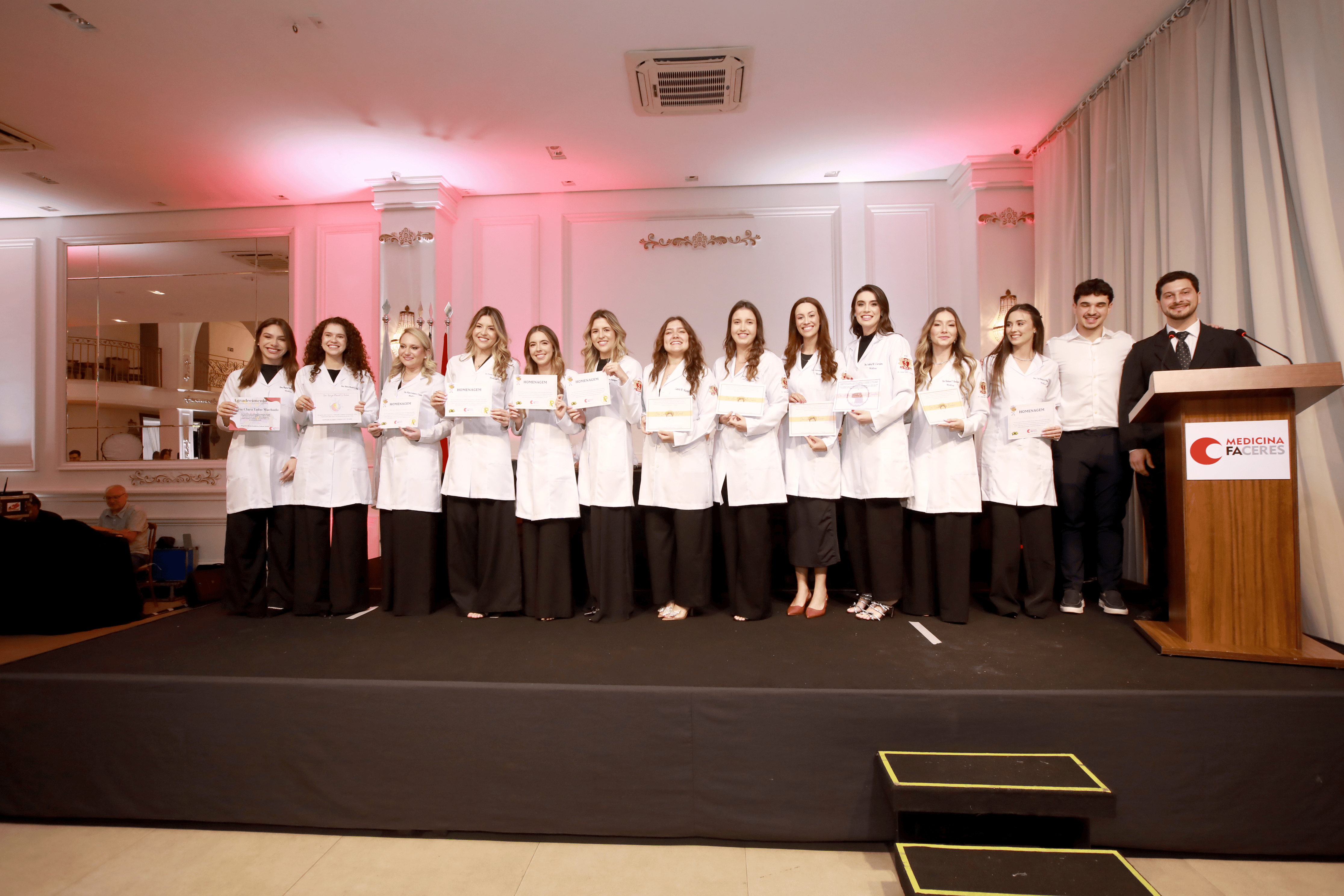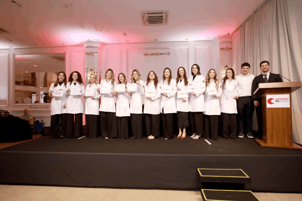 Durante a cerimônia, representantes do Centro Acadêmico, da Atlética e da IFMSA FACERES prestaram homenagens especiais, relembrando a trajetória de cada formando e sua contribuição à comunidade acadêmica.