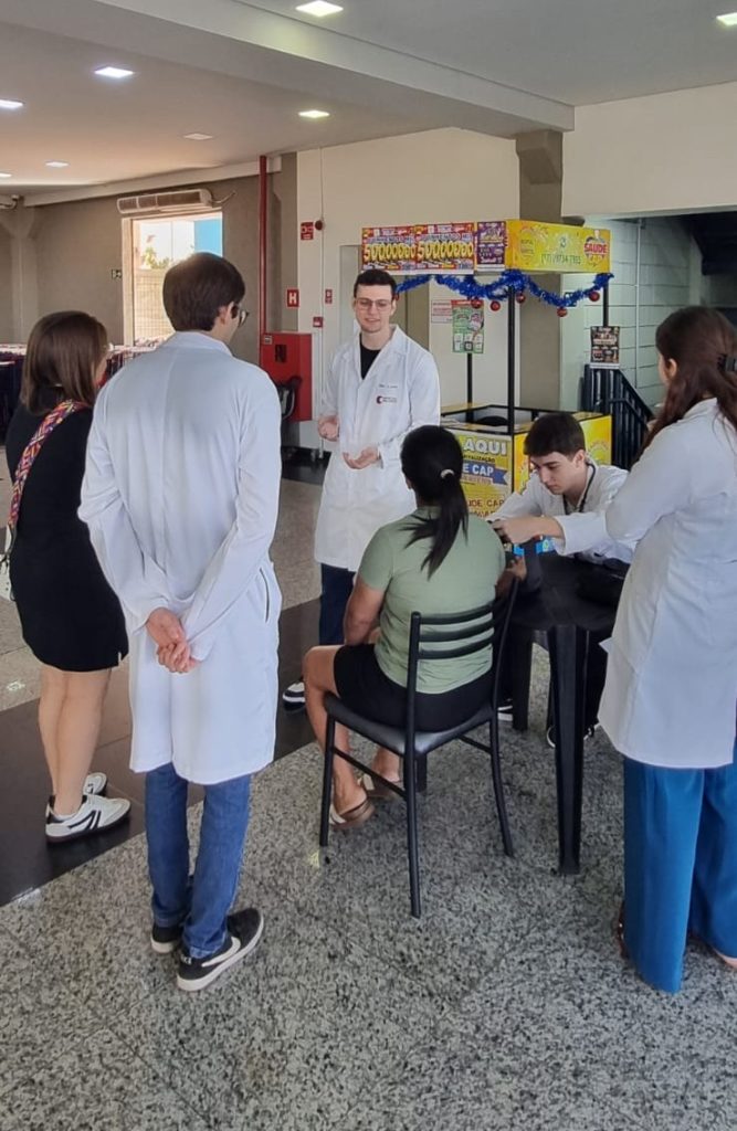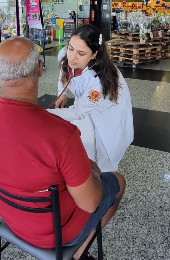 A iniciativa teve como objetivo disseminar informações seguras e baseadas em evidências, reduzir o estigma relacionado ao HIV e fortalecer uma cultura de cuidado e prevenção, seguindo as diretrizes do Ministério da Saúde e do Sistema Único de Saúde (SUS). Durante a ação, os estudantes, organizados em equipes e supervisionados por docentes do PIX (Programa de Integração Comunitária), realizaram orientações diretas à população, distribuíram preservativos e folders informativos oficiais, além de aferirem a pressão arterial como forma de acolhimento e incentivo ao cuidado com a saúde.