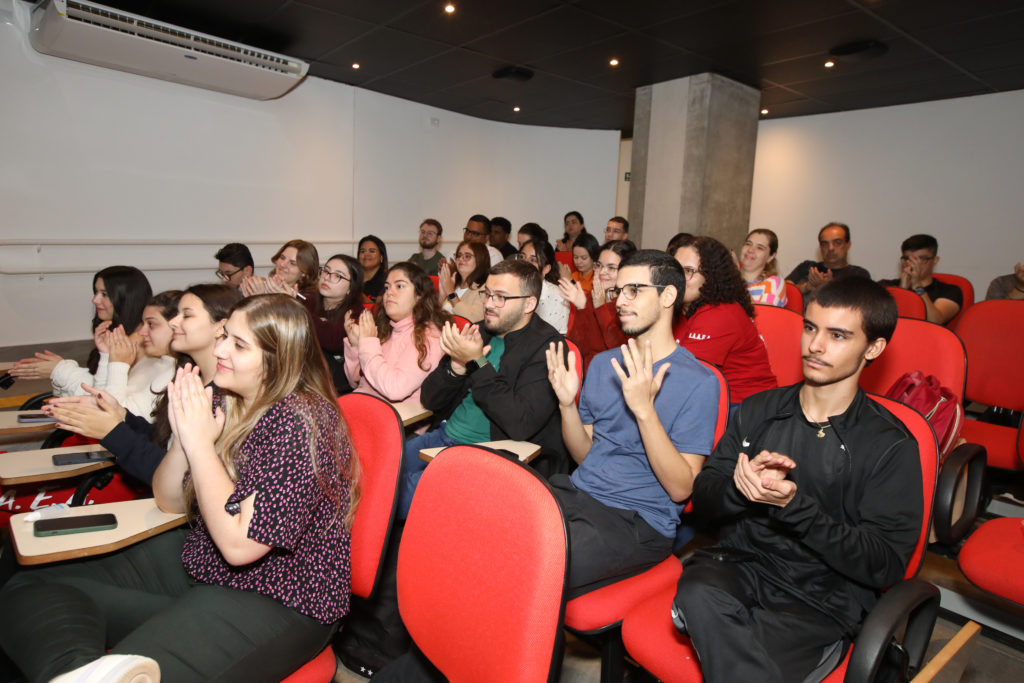 Os estudantes da 27turma 27, etapa 1, participaram ativamente da discussão. Para a acadêmica Melissa Amadeu, a experiência foi marcante: “Foi muito interessante. Estamos no primeiro semestre e já poder falar sobre isso fortalece a gente como pessoa e como futuros profissionais. Falta muito profissional humano hoje em dia. Ver Libras, entender como acolher um paciente surdo ou cego, nos prepara para atendimentos reais”, afirma.