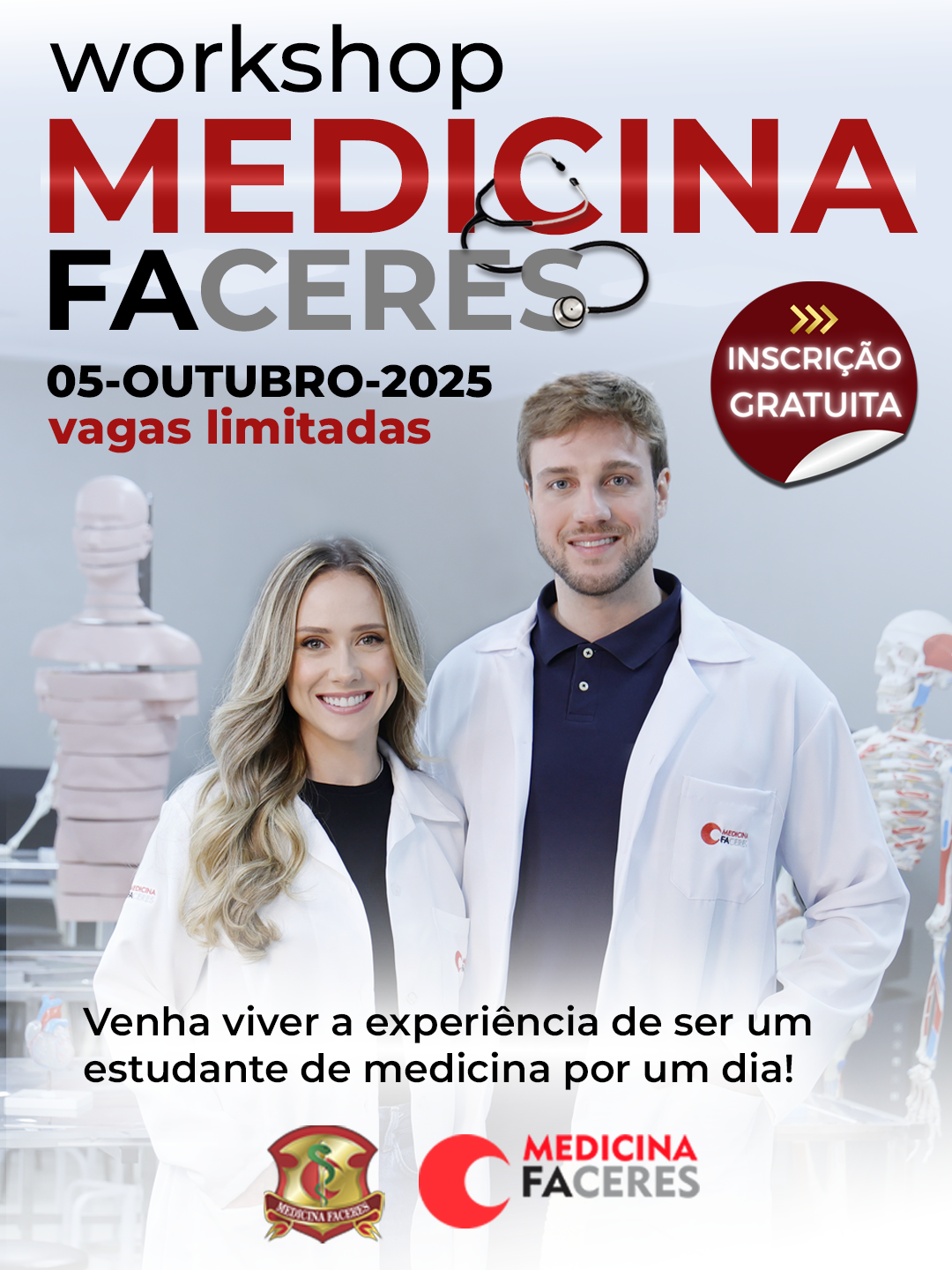 Estudantes do ensino médio e de cursinhos pré-vestibular terão a chance de descobrir, na prática, como é o cotidiano de um futuro médico. A Faculdade de Medicina FACERES realiza, dia 5 de outubro de 2025, o Workshop de Medicina. O evento acontece das 8h às 12h40, com credenciamento a partir das 7h30, na sede da instituição em São José do Rio Preto (SP). A participação é gratuita e as vagas são limitadas.