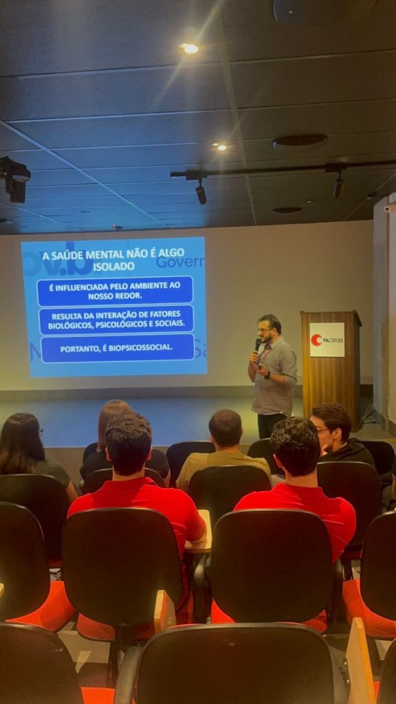 Durante sua fala, o psiquiatra, Dr. Fábio Borghi ressaltou a importância da conscientização e da busca por estratégias saudáveis no cotidiano.